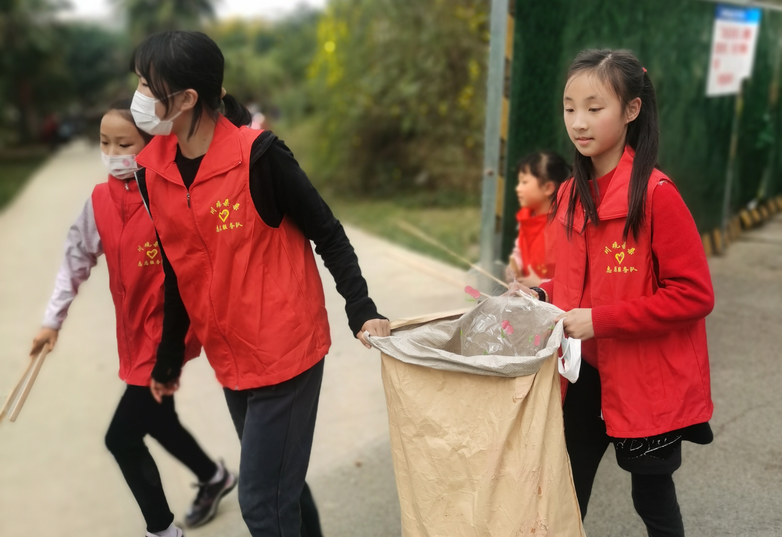 小志愿者们在清理街道垃圾。