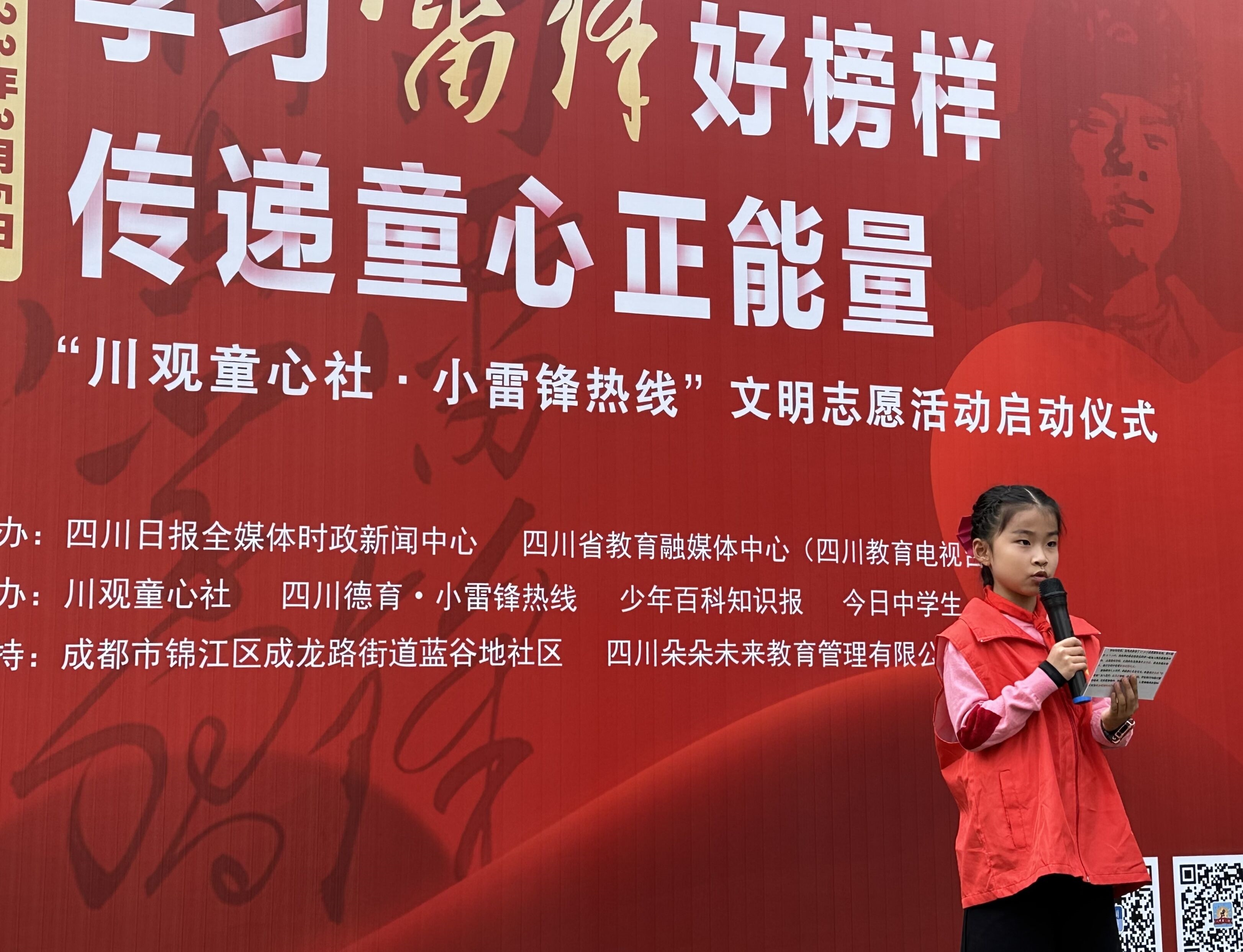 “慰问空巢老人、倡导垃圾分类、录制公益MV、护航文明交通、传播中华文化……我把雷锋叔叔作为榜样,努力学习他助人为乐、无私奉献的精神,积极参与到各种志愿服务活动中。”3月5日是第60个“学雷锋纪念日”,在川观童心社·小雷锋热线发起的“学习雷锋好榜样 传递童心正能量”文明志愿活动启动仪式上,川观朵朵志愿服务队的志愿者夏瑞熙小朋友号召更多的“小雷锋”加入到文明志愿行动中来,一起争做新时代小雷锋,让雷锋精神在新时代绽放更加璀璨的光芒。