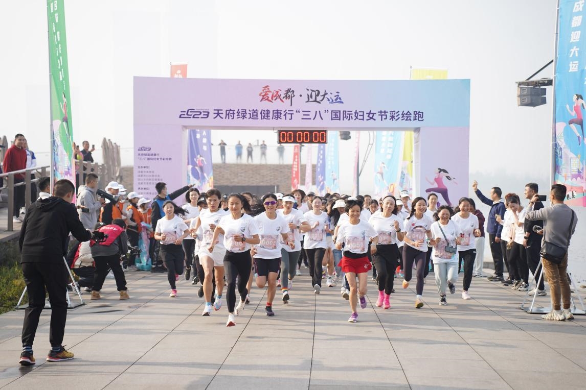 3月8日,为庆祝第113个国际劳动妇女节,引导广大妇女积极响应全民健身号召,营造热烈的“爱成都 迎大运”氛围,由成都市体育局、成都市妇女联合会等单位联合主办的“爱成都·迎大运”——2023年天府绿道健康行“三八”国际妇女节彩绘跑在天府新区秦皇湖鸣枪开跑,来自成都市各行各业近200名女性选手参与了本次活动。