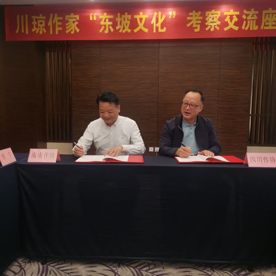 在海南,四川省作家协会与海南省作家协会签署关于传承书写东坡文化战略合作框架协议,传承弘扬中华优秀传统文化,努力打造新时代“苏东坡文化带”,促进文学事业协同发展的良好格局,推进两地东坡文化的传承书写与深度交流合作。双方将搭建文学交流平台,共同推进川琼东坡文化文学主题交流平台建设,就传承弘扬东坡文化举办系列主题文学采风、作品改稿等文学活动,互派作家参与,形成常态化交流等,双方作协也将不定期互赠文学刊物。