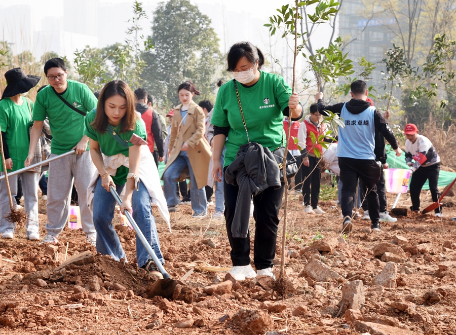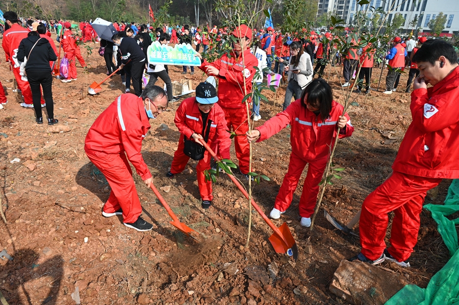 在一年一度的植树节到来之际,3月8日,2023成都市民义务植树志愿服务活动在天府新区兴隆湖畔举行,800余名党员志愿者、青年志愿者共植桂花树500余株。