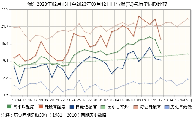 冷空气导致的这一波回落,也就是把气温引回正常轨道。温江国家气象观测站的观测记录很好地说明了这一点↘