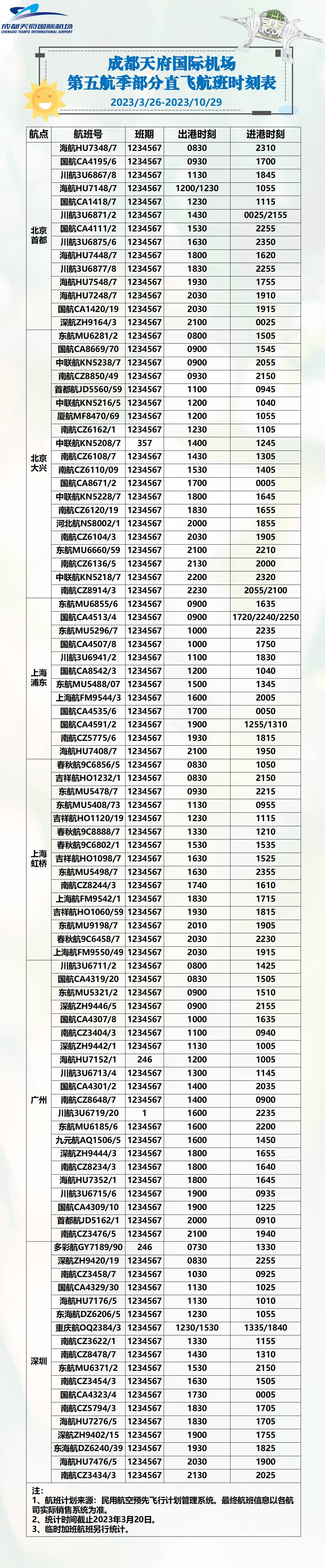 据介绍,天府机场将持续丰富、优化航线网络布局,提升核心干线市场份额,构建适应复合型枢纽打造的航线网络。新航季,天府机场北上广深核心干线密度大幅提升,全天均匀覆盖,丰富旅客选择,便利快捷出行。