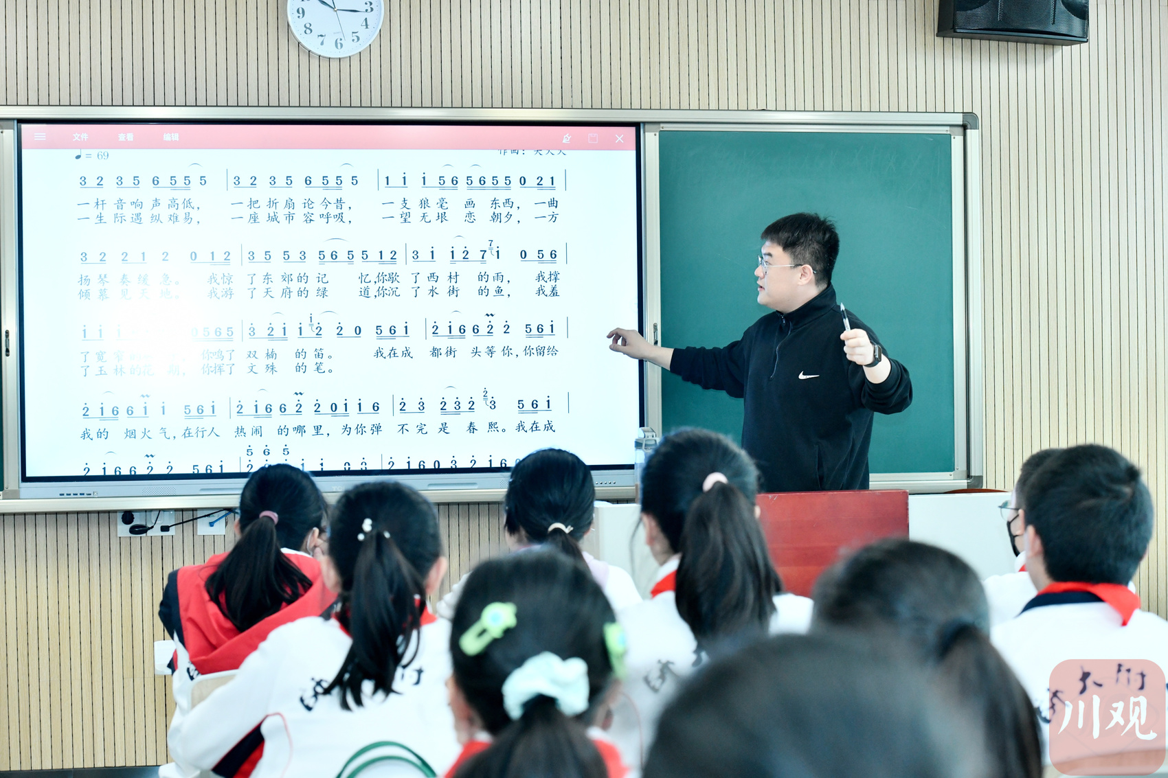 清风吹拂,春意正好。成都市街头艺人唱响成都大运会主题曲《世界是我们》《我在成都街头等你》,邀同学们一起用歌声表达对大运会的祝福。旋律打破了人与人间的间隔,轻松、动感、明媚又纯粹的气息弥漫全场。蓬勃的音浪酝酿热情,大运生活唱成了诗意。在歌声里,情绪化的音乐将每个人感染,少年们沉浸其中,舒展着身心。