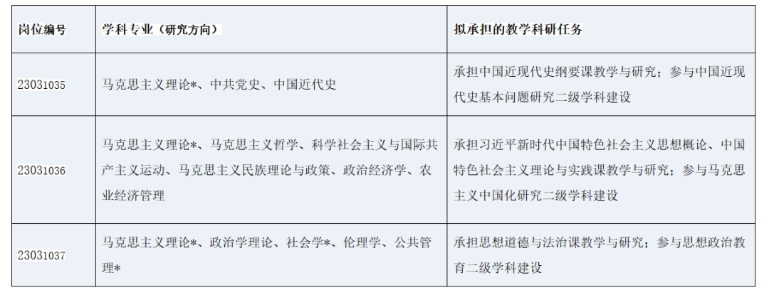 学科专业(研究方向)、拟承担的主要教学科研任务等要求如下表,各岗位拟聘人数由学校根据学科专业建设实际需要研究确定。