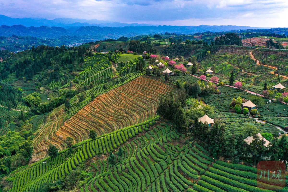 茶产业的蓬勃发展,也直接带动雅茶与旅游产业的融合。在名山区中峰镇牛碾坪万亩观光茶园,错落有致的茶园中,不少游客在亲手采摘茶叶,体验传统制茶技艺。