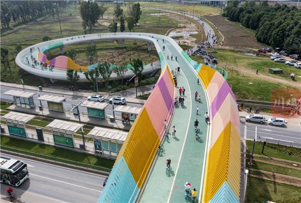 成都绿道文旅集团相关负责人介绍,全环以绿道为线,78座桥梁为点,串联起121个特色公园,让市民们可以骑行在公园之中,迎接意想不到的风景。