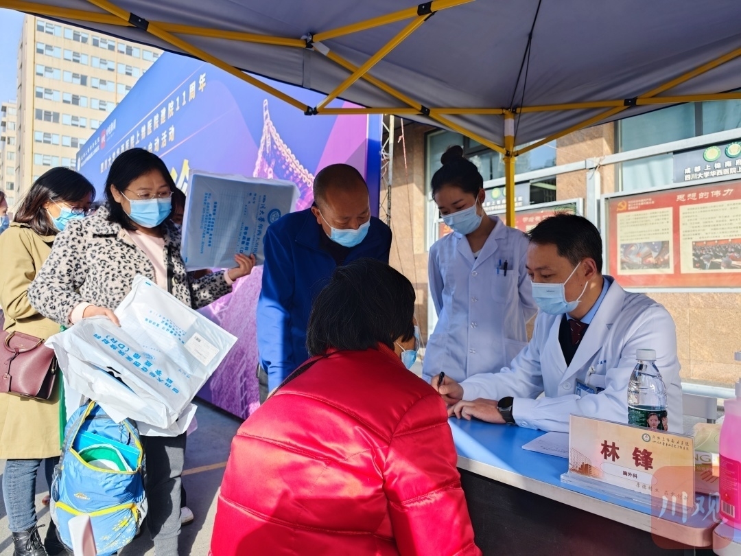 上午8点45分,大型义诊活动在医院门诊大楼前开始。义诊覆盖神经外科、乳腺外科、耳鼻咽喉-头颈外科、胸外科等33个科室,46位专家坐诊。那些平时一号难求、挂号需要拼手速网速的大专家些,包括雷町、周光耀、林锋等华西大咖,这次都在义诊现场免费为咨询者看诊。