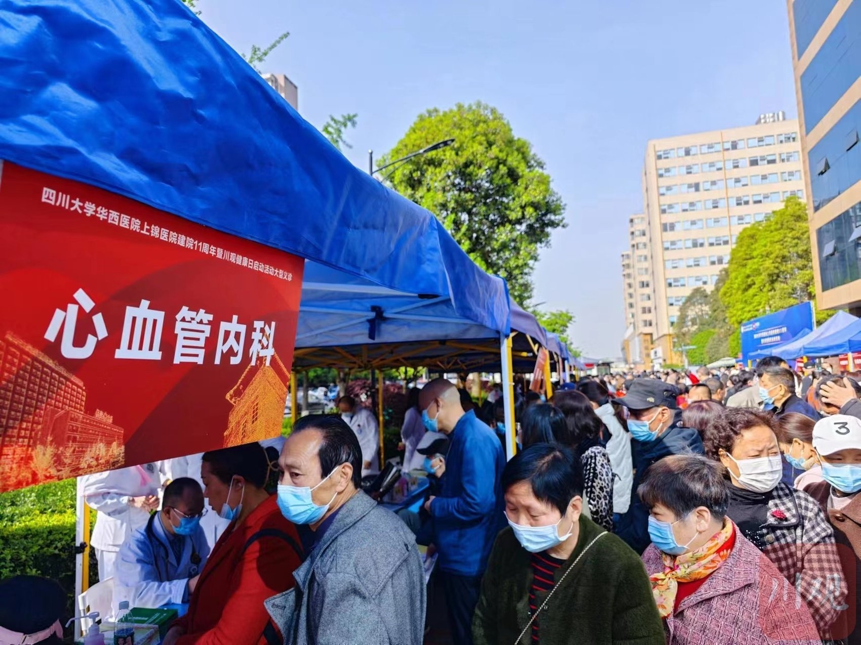4月8日,四川大学华西医院上锦医院庆祝建院11周年暨川观健康日启动活动大型义诊在上锦医院举行。华西医院上锦医院名誉院长曾智、党委书记程述森、上锦医院院领导班子及川观新闻相关负责人参加活动。来自华西医院上锦医院33个专科的46名专家来到现场参加义诊。本次义诊活动持续4小时,共计服务咨询者5000余人次。