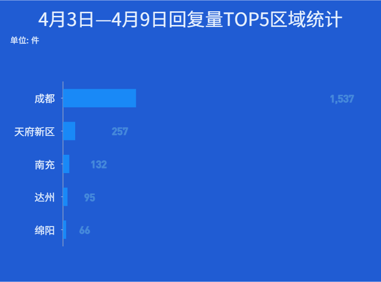 从具体接件办理单位来看,全川回复量排名前五的账号分别为: