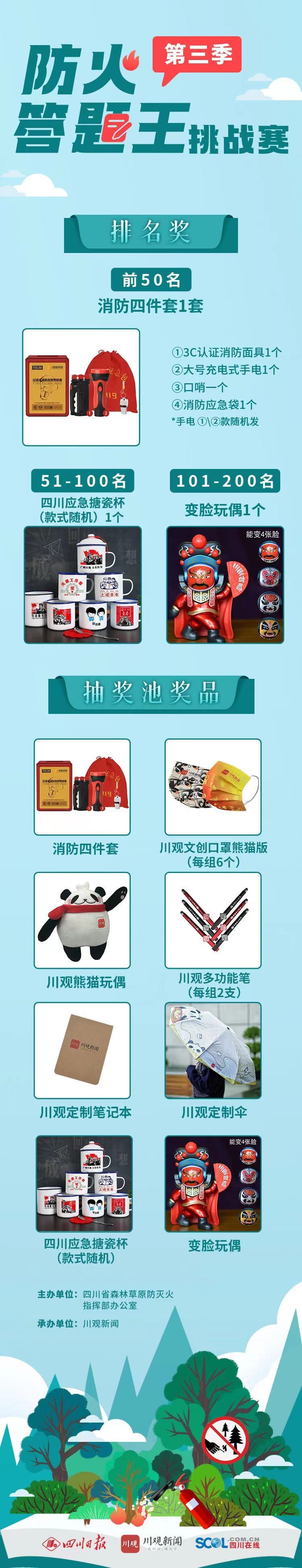 特别恭喜前200名的选手!请记得进入答题页面,查看自己的获奖情况,并及时填写用户信息,以便川观新闻将奖品为您邮寄到家。