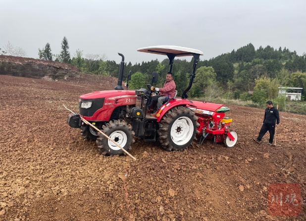 4月6日,乐至县农户使用农机进行播种。(资阳观察 刘嘉仪/摄)