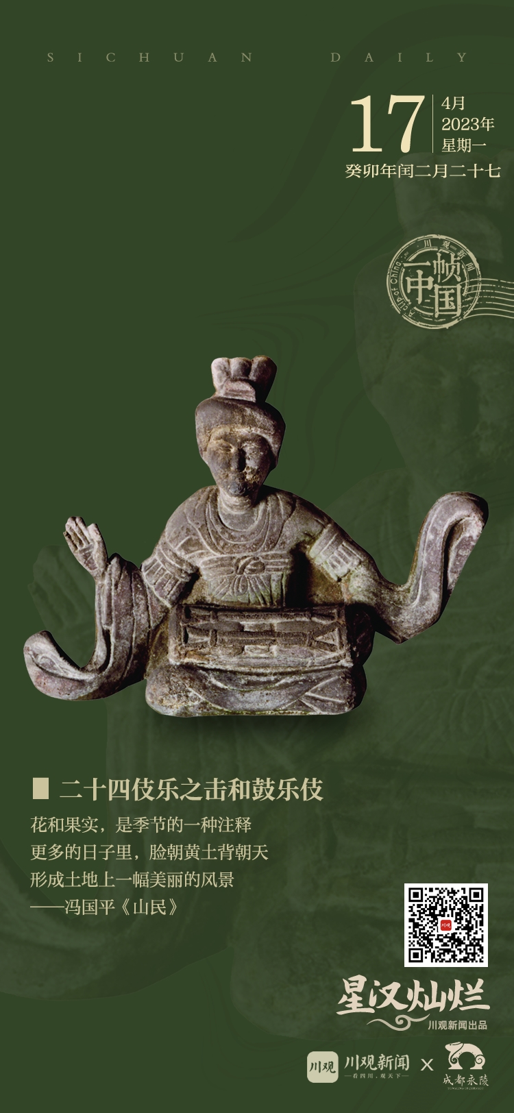 二十四伎乐中的击和鼓乐伎位于永陵棺床东侧前段。乐伎以左右两手一扬一停,轮番击打鼓面,动作与正鼓伎相应和。在匠人们高超的雕刻技艺下,我们似乎能够从乐伎的衣袂翩跹中感受到其专注而婉约的击鼓动作。