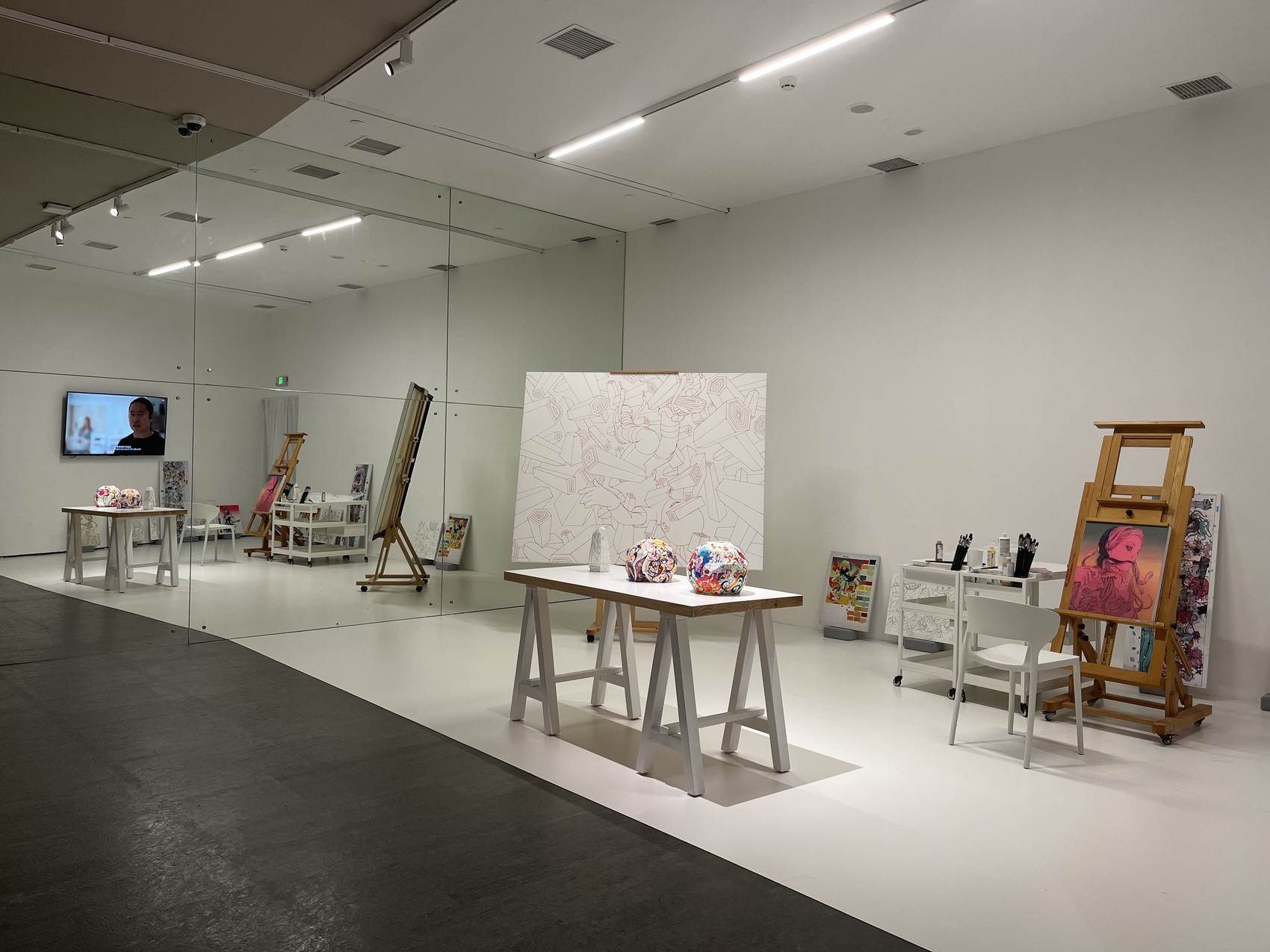 简明所有的画都是从一个粗略的草图开始,观众们会在二楼展厅观赏到超过100幅艺术家从1999开始记录下的每一个灵感时刻的速写手稿,以及大量丙烯画原作,从中寻找艺术家创作生命的线索和点滴。除此之外,本次展览还复刻了简明的工作室场景,观众们能够在这里了解作为色彩大师的简明最为人称道的色彩研究技法是如何构成的。