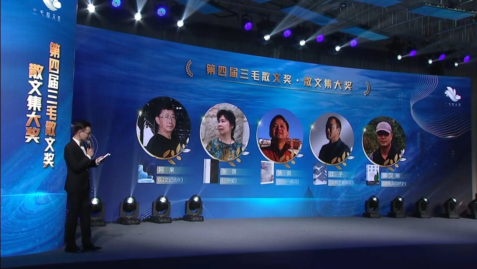 “三毛散文奖”是以定海籍当代女作家三毛命名的著名文学奖项,每两年举办一届。本届三毛散文奖共评选出获奖散文集13部、单篇散文13篇,包括大奖各5件、实力奖各4件、新锐奖各4件,获奖作品均获得评委总票数一半以上。其中,中国作协副主席、四川省作协主席阿来的《以文记流年》,国家一级作家、中国报告文学学会会长徐剑《恰如一阕词》,江西省作协副主席、秘书长江子《去林芝看桃花》等获得散文集大奖;汗漫《在南方》,罗南 《后龙村扶贫记》等获得散文集实力奖;四川作家羌人六的《绿皮火车》,藏族作家王小忠《洮河源笔记》等获得散文集新锐奖。