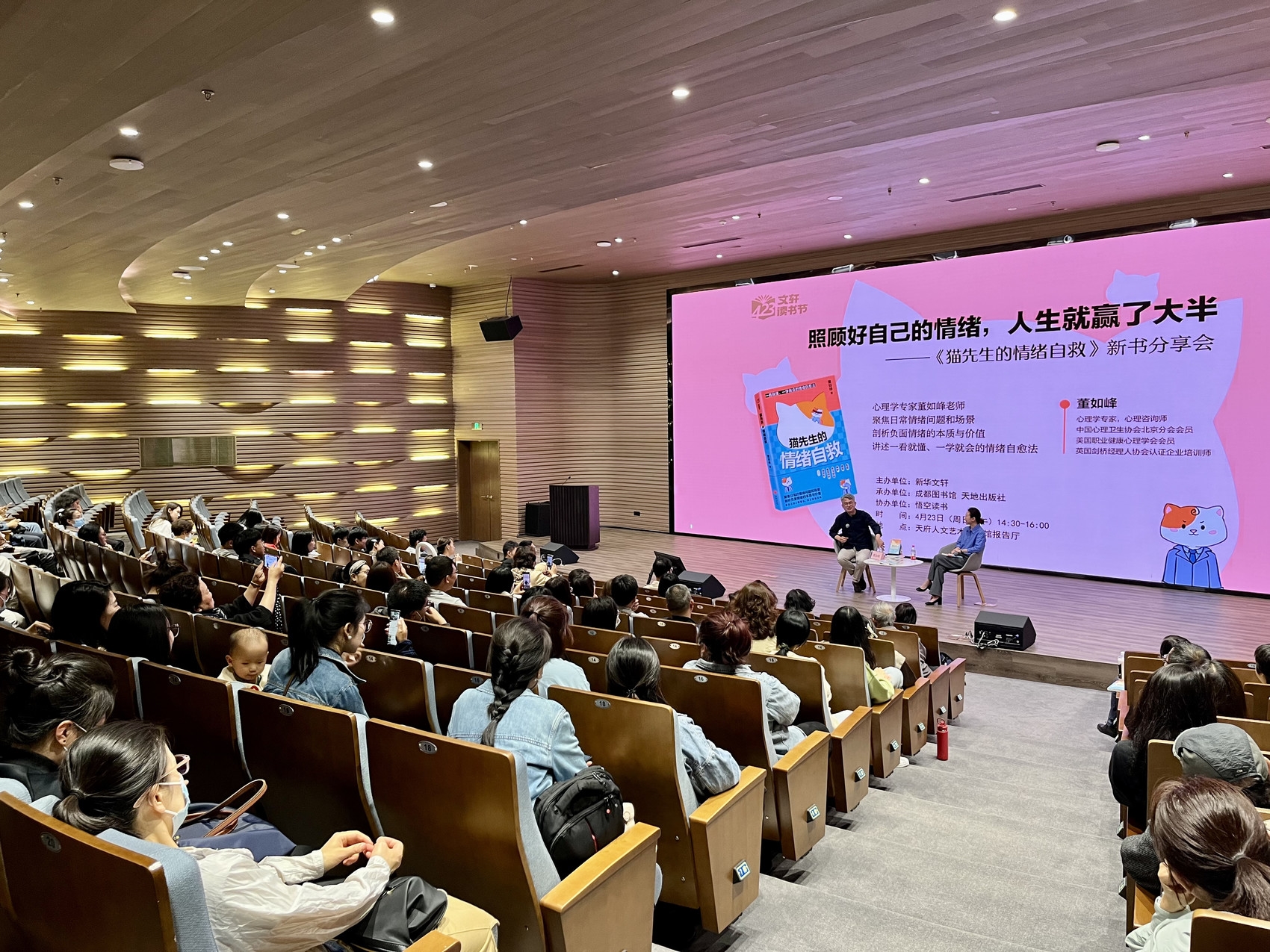 4月23日,第28个世界读书日。当天下午,四川省首届“书香天府 全民阅读”大会的先导预热活动“照顾好自己的情绪,人生就赢了大半——《猫先生的情绪自救》”新书分享会在成都市天府人文艺术图书馆举办。心理学作家董如峰携新书《猫先生的情绪自救》亮相现场,为读者们梳理情绪烦恼,解决情绪问题。