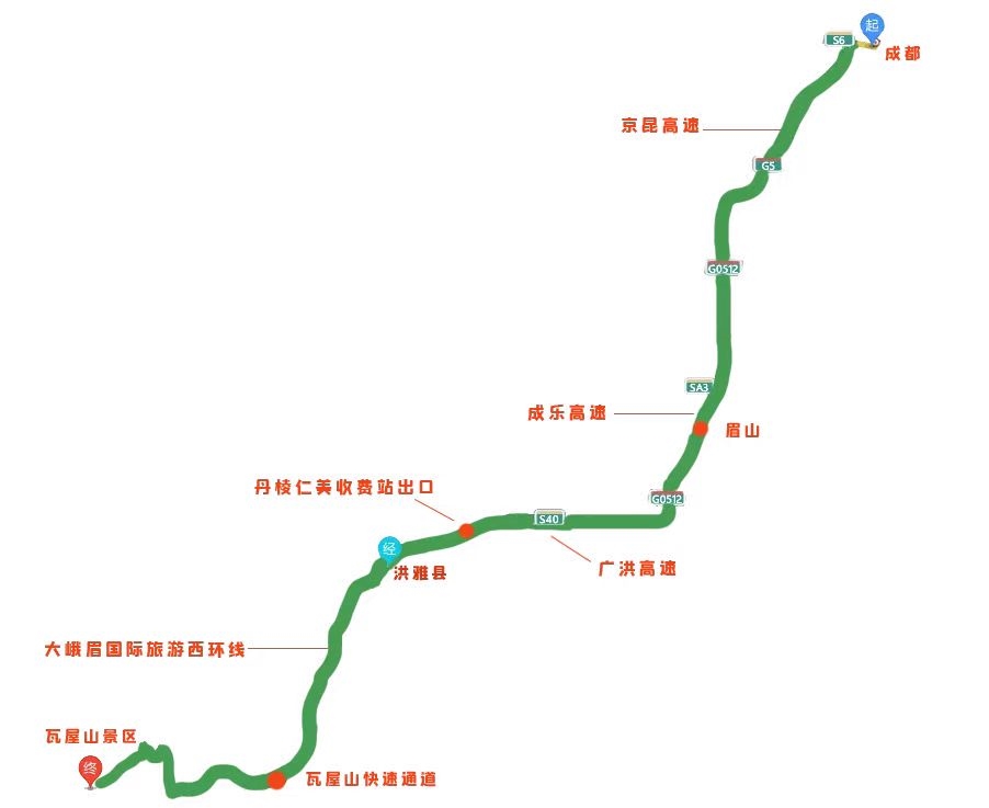 瓦屋山快速通道全长21.3公里,项目建成后,成都到瓦屋山可由成都经遂洪高速到洪雅,取道瓦屋山快速通道,将节约1小时左右时间,行车时间由现在的3个半小时缩短到2个小时。