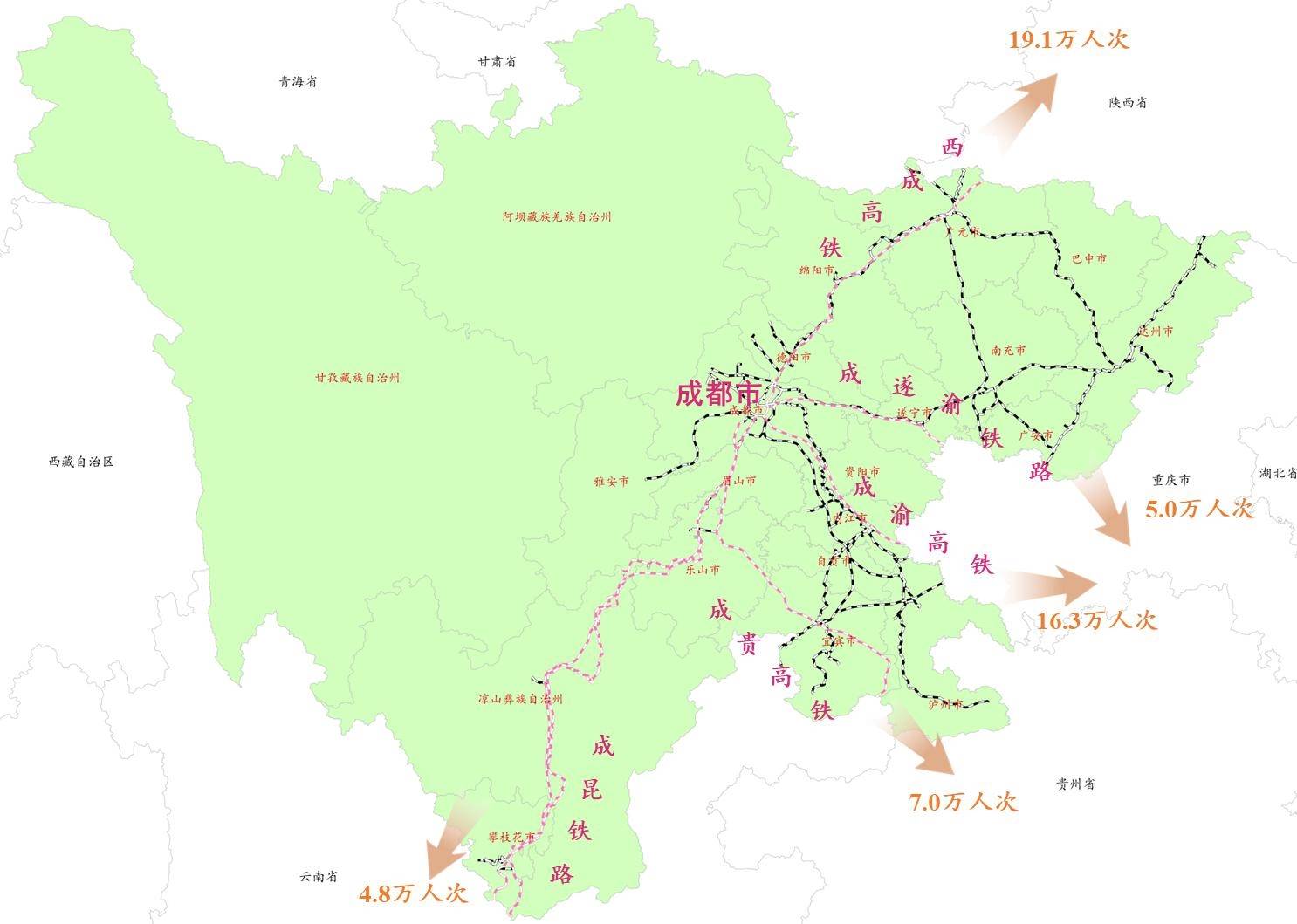 从铁路重要干线看,预计西成高铁、成渝高铁、新成昆铁路等客流量都将较大。