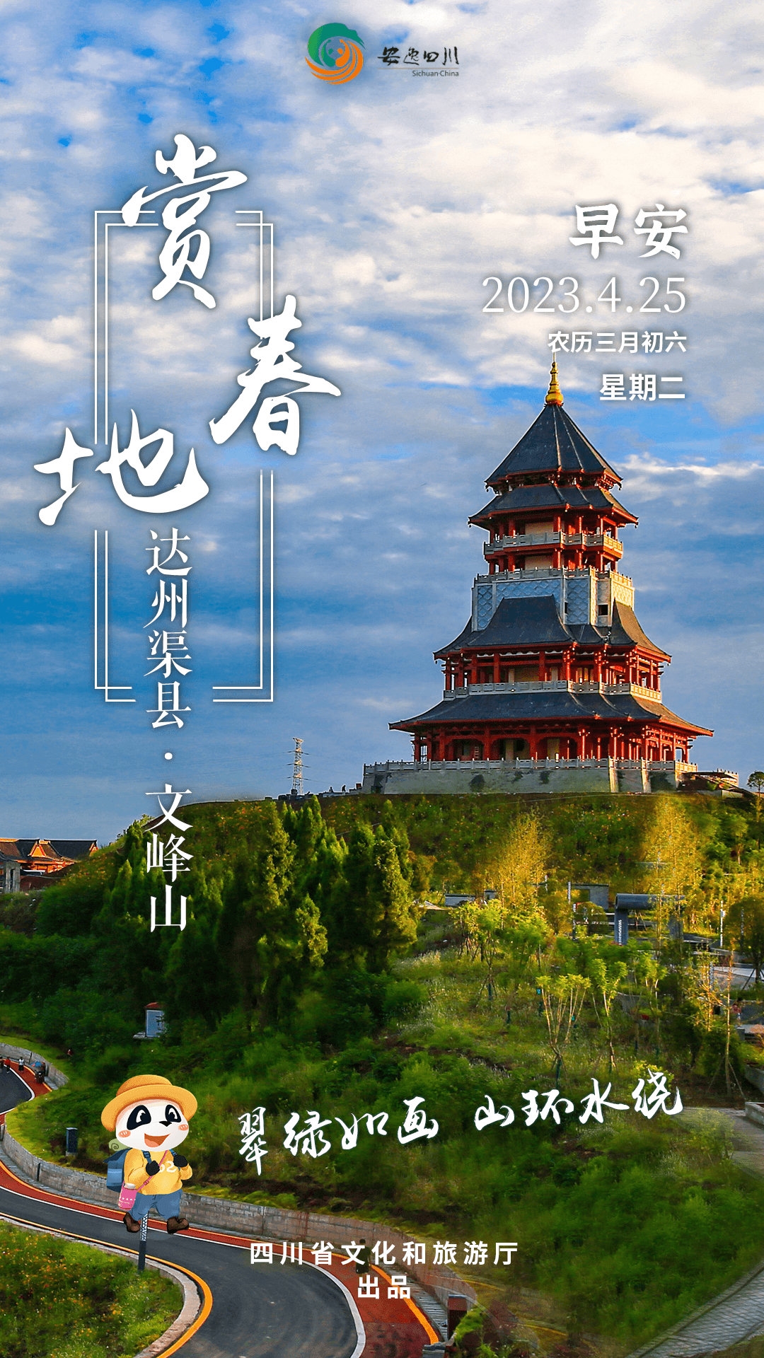 4月25日,星期二。今天安逸四川日历海报带大家走进达州市渠县文峰山,感受翠绿如画,山环水绕。