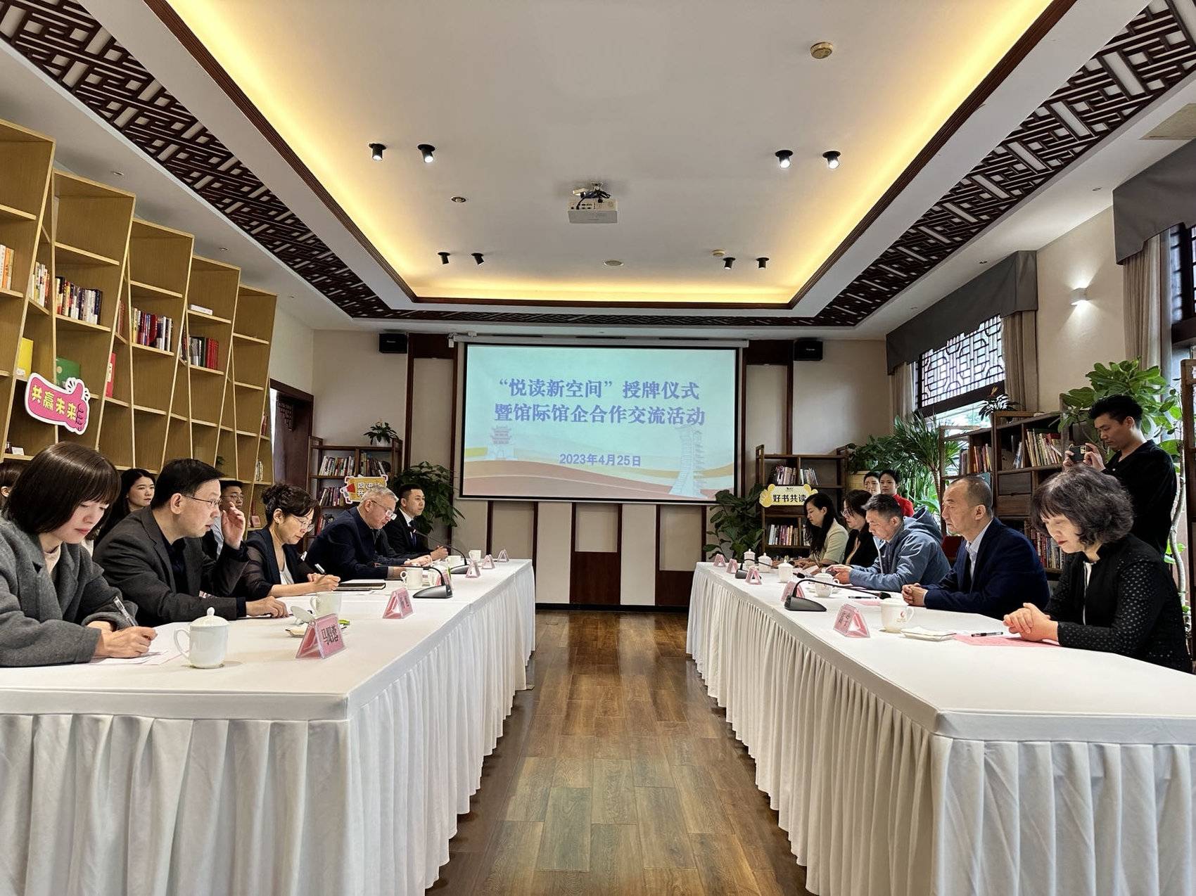 成都广元宾馆广缘茶书院“悦读新空间”授牌仪式暨馆际馆企合作交流活动现场。