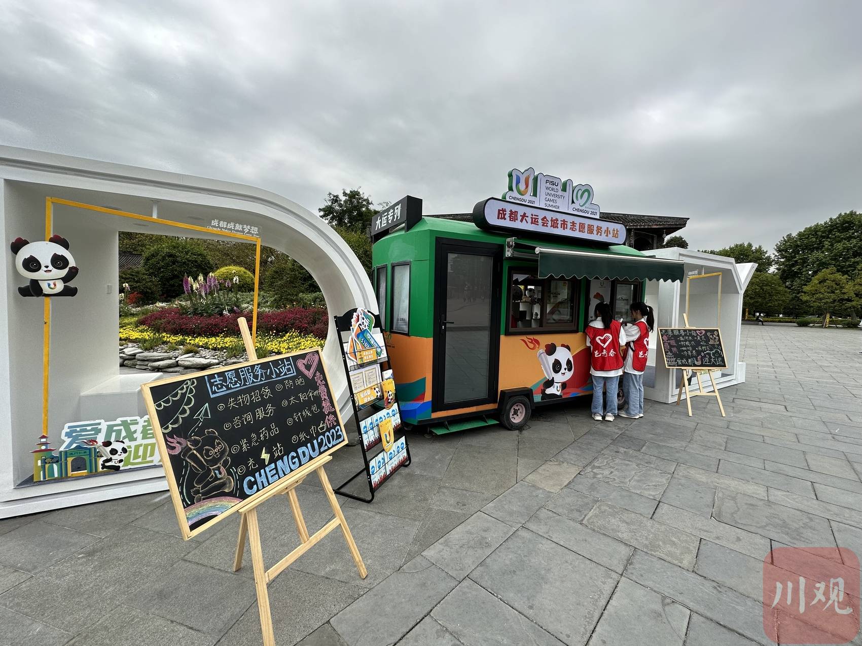 4月24日清晨,雨后的成都安仁古镇空气清新。游客中心旁,一个全新的志愿服务小站吸引了不少人的注意——小站融合了景区流动花车的功能,可以为游客提供中英文旅游导览、交通指引、大运会赛事咨询等志愿服务,还备有应急药品、防晒用品、饮品等暖心物资。