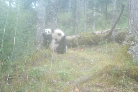 近日,大熊猫国家公园唐家河片区科研监测人员在整理红外相机数据时,发现了两只大熊猫同框活动的高清影像。经对比分析,两只大熊猫为一对母子。