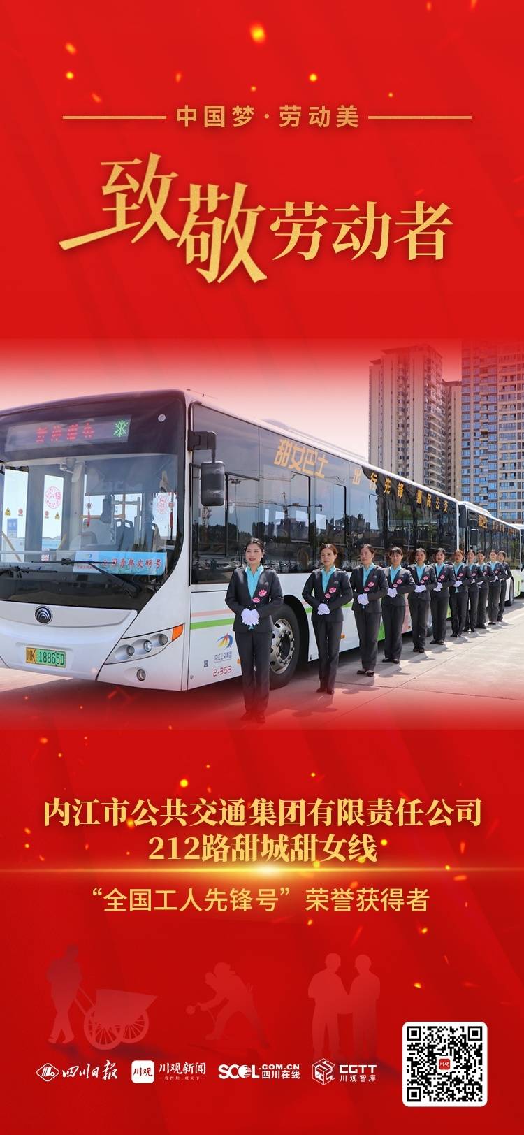 内江市公共交通集团有限责任公司212路甜城甜女线于2015年6月开通,该线路共有车辆20台,共有女车长26名,线路融合内江地域特色甜城甜文化,承担了“内江北站—天立国际学校”的客运任务,是一条人流量大、站点密集、路段繁华的线路。这条线路2022年获评“四川省工人先锋号”,2023年获评“全国工人先锋号”。