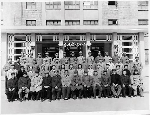 1965年10月30日青海221厂办公楼前九院领导和春雷文工团团员合影(陈能宽前排右三)。