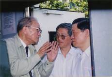 1996年11月25日陈能宽王淦昌在上海光机所观看试验。