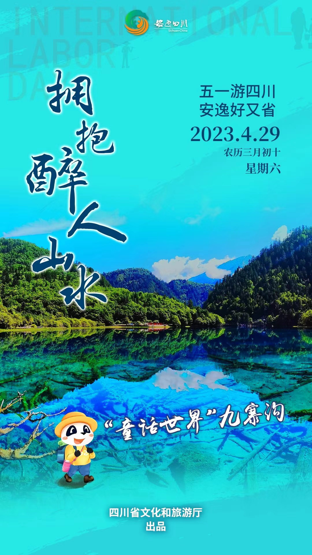 4月29日,星期六,“五一”假期第一天。今天安逸四川日历海报带大家走进“童话世界”九寨沟,拥抱醉人山水。