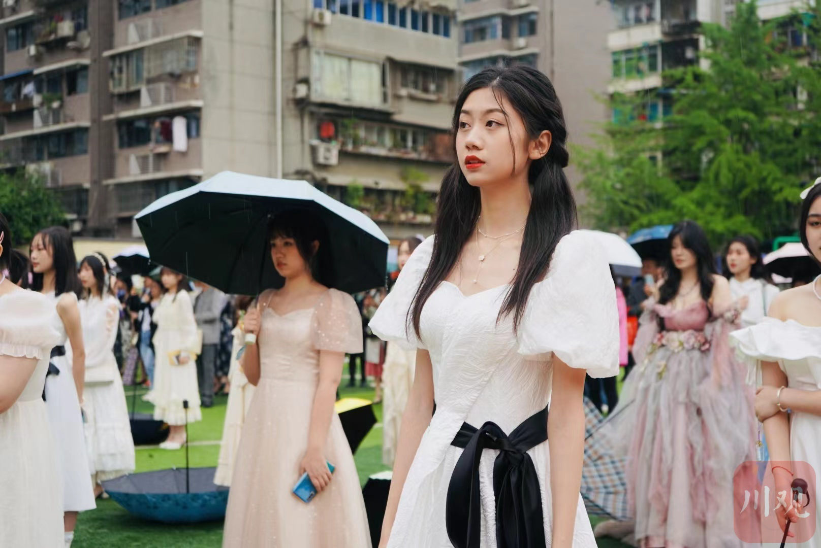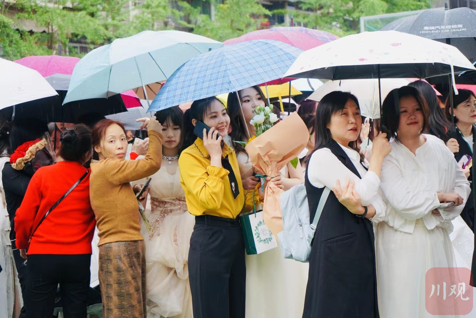 伴随着小雨天气,数百名学生和家长盛装出席了成人礼活动。