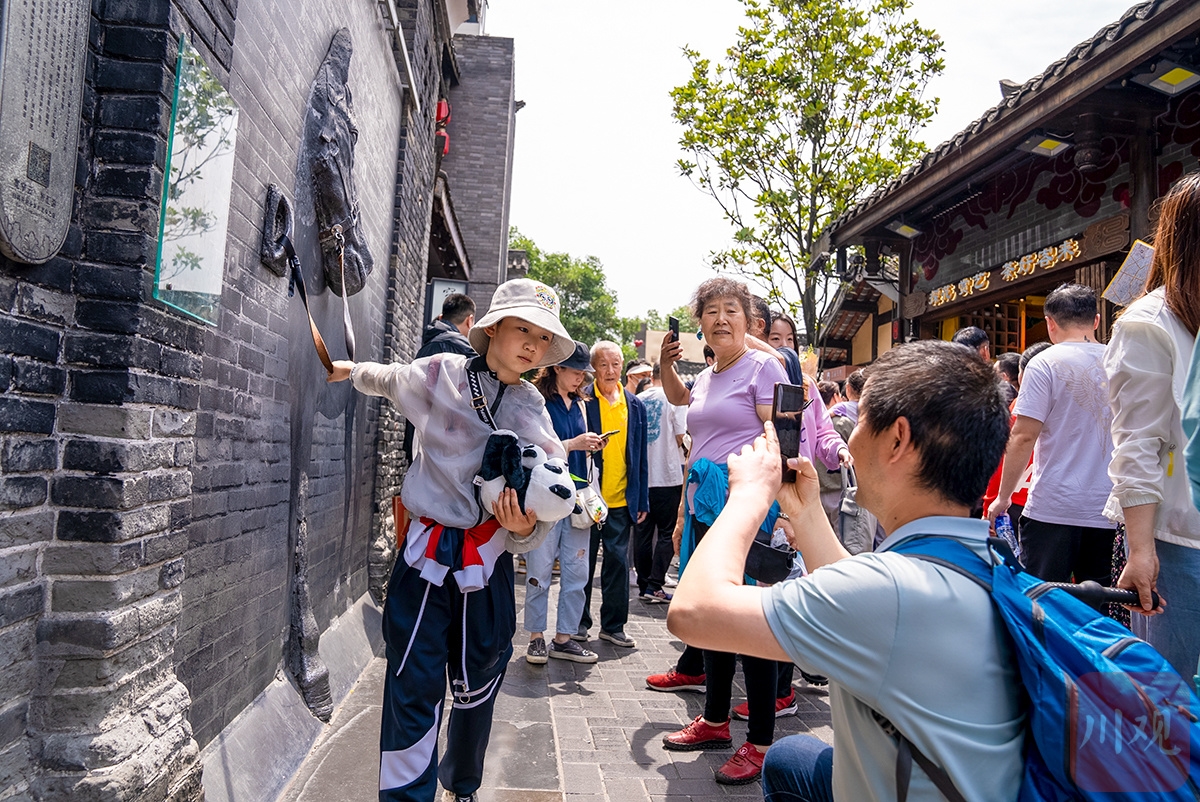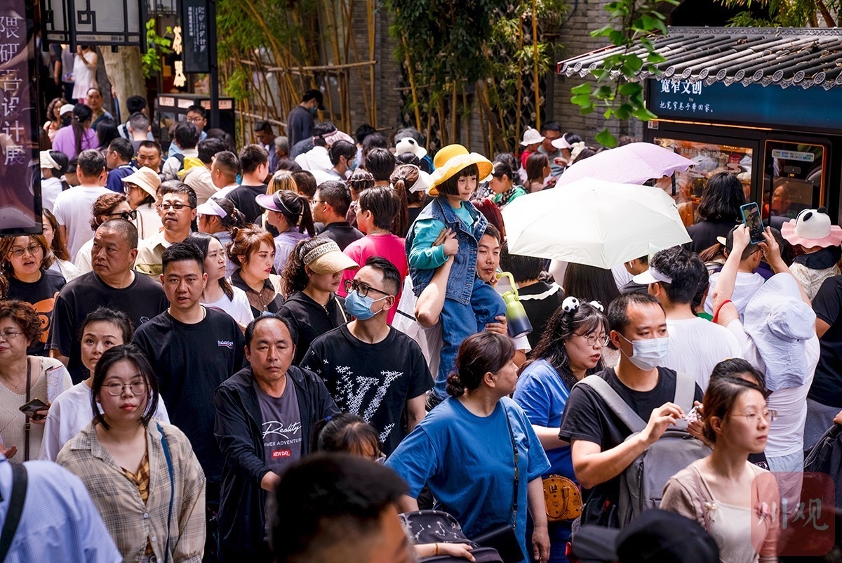 作为全国出游的热门目的地之一,不少游客来到成都打卡。5月1日上午,记者在宽窄巷子看到,现场游人如织,行进缓慢,但秩序井然。据了解,假期首日,宽窄巷子启动了乐飨•Love美食荟活动,并在现场设置了近40个摊位。游客不出宽窄巷子就可以享受泰式舂鸡爪、泰式奶茶、老挝咖啡、土耳其手冲咖啡等全球美食。