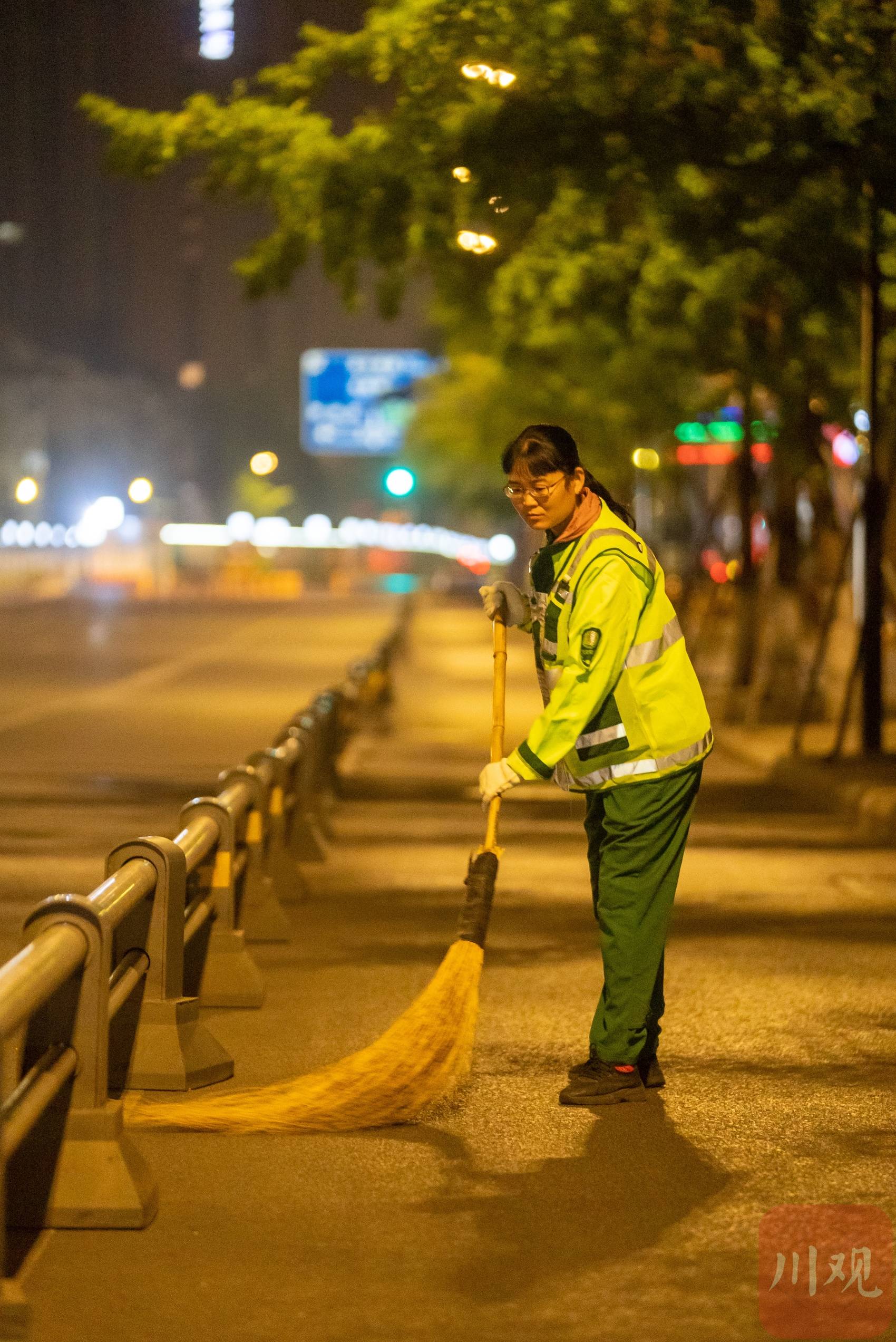 4月26日,天府环境环卫工人熊建芬在成都府河摄影公园清理街道。