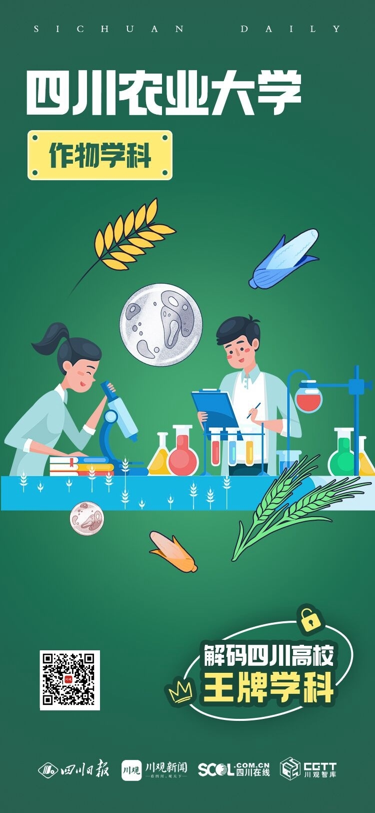 从传统农业过渡到现代农业,四川农业大学作物学科的发展历史已逾百年,当前已建设成为西南区农业高级人才的培养中心和农业科技成果研发的重要基地。放眼未来,学科将进一步强化“新农科”建设,着力培养富有“三农”情怀与国际视野的强农兴农卓越拔尖人才,突出解决作物种子创新、绿色生产等领域的重大科学问题和“卡脖子”关键技术。