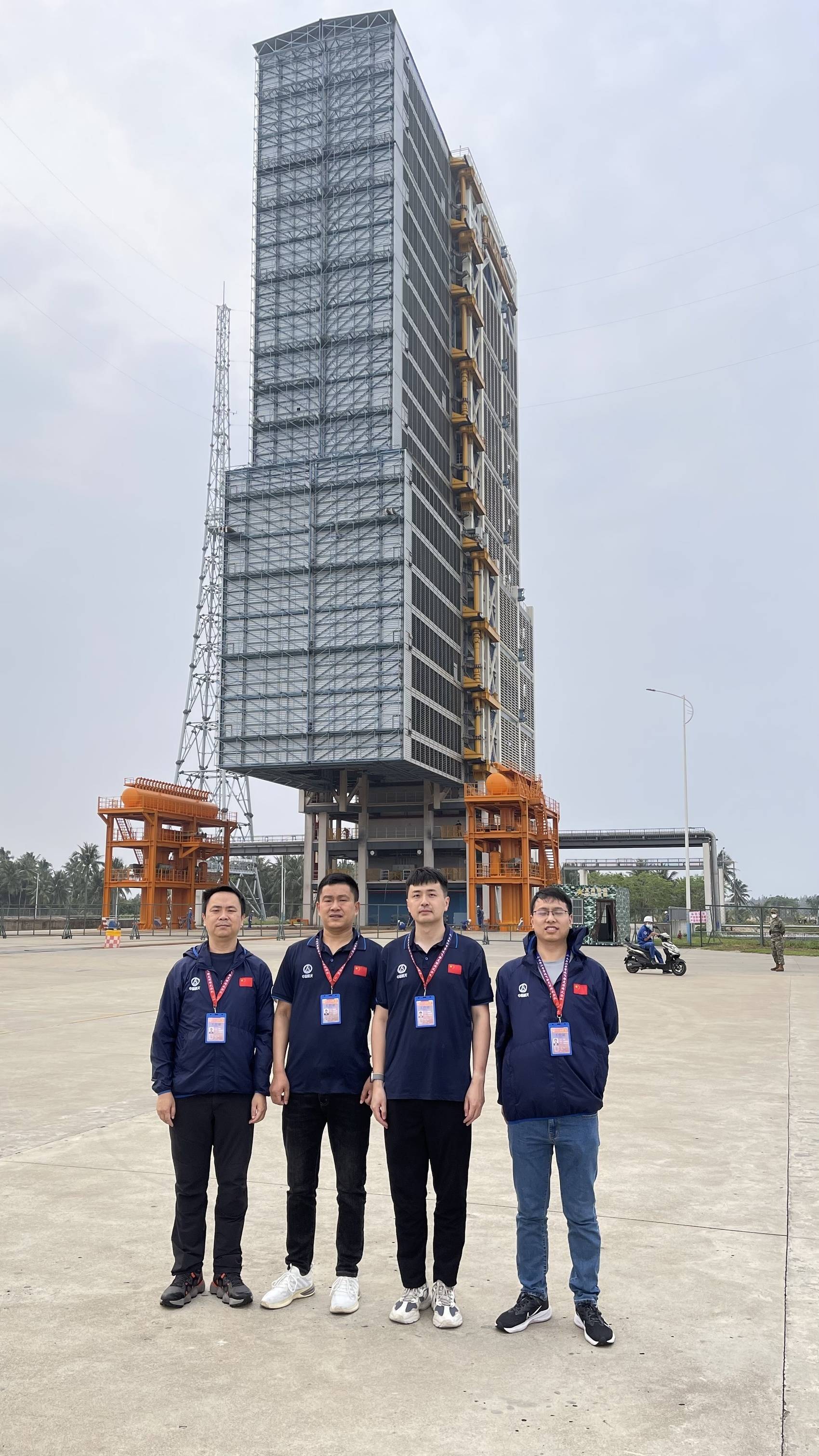 货运保障分系统发射场七院试验分队在发射塔下合影。 受访者供图