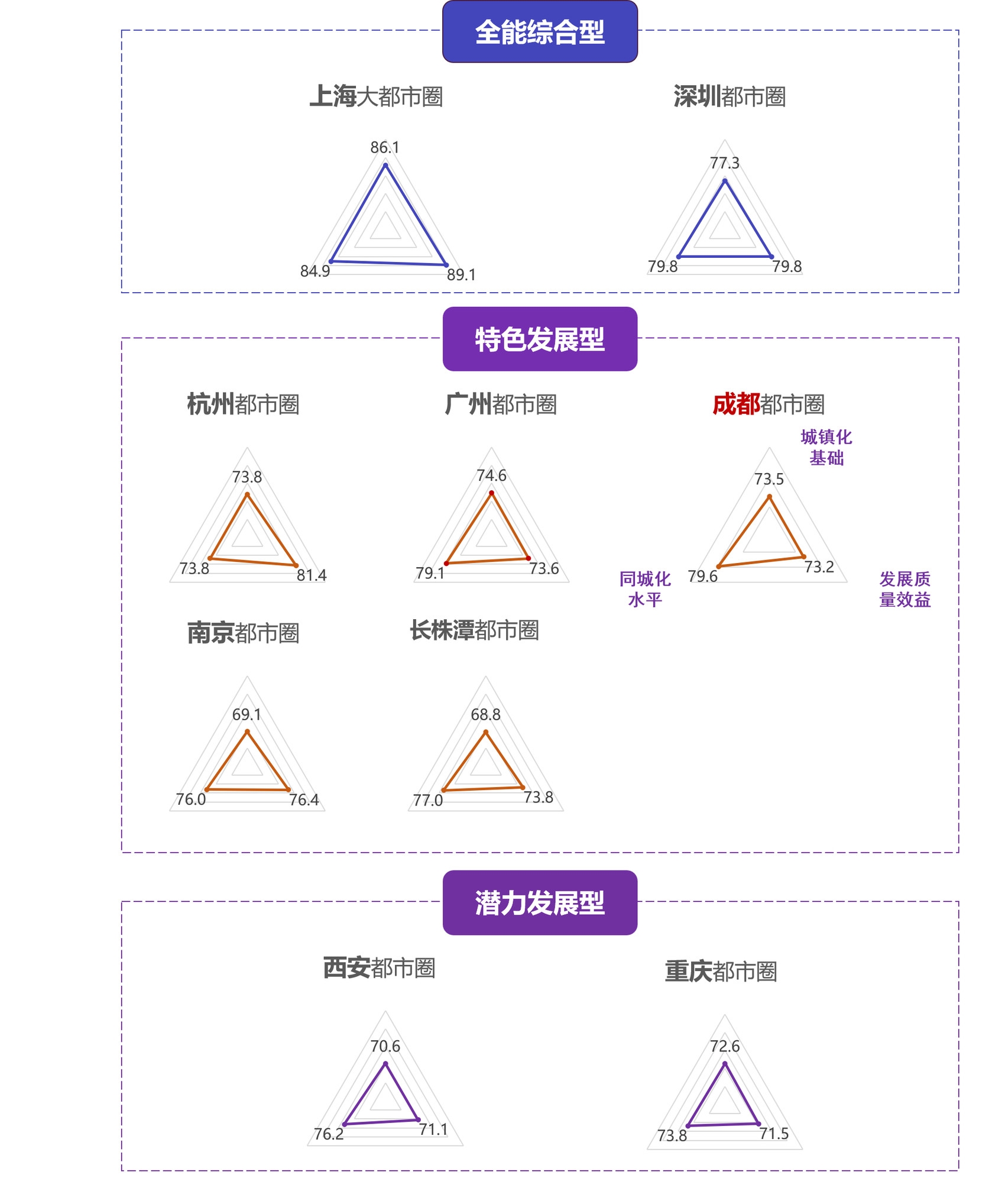 属于特色发展型都市圈,同城化发展水平优势更为突出