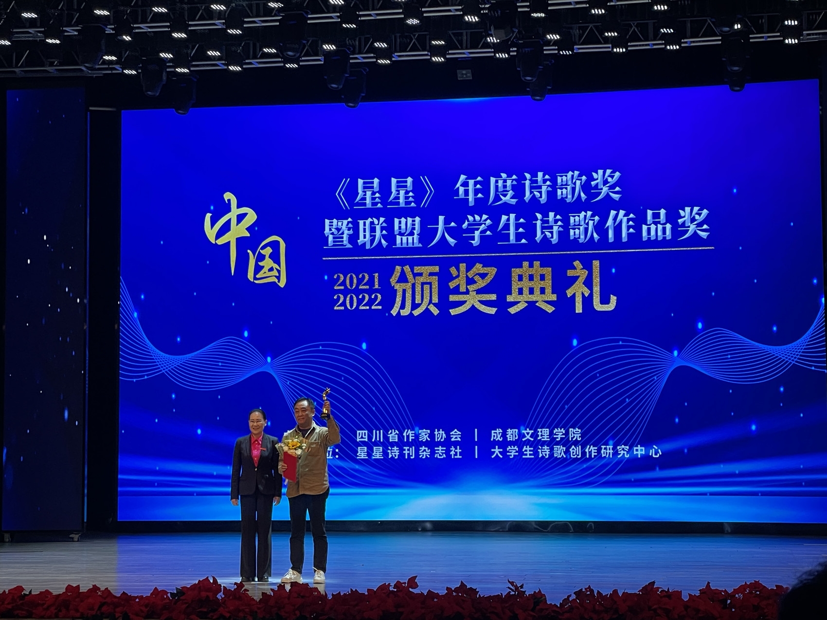 据悉,“星星年度诗歌奖”评选活动由《星星》诗刊社与成都文理学院于2007年起联合主办,迄今已走过了16个年头,逐渐成为我省文化领域乃至中国诗坛的品牌,成为国内的诗歌专业奖项之一。16年来,“星星年度诗歌奖”奖掖了一大批有实力、有境界、有潜质的诗歌写作者和诗歌评论家,韩作荣、大解、王小妮、臧棣、路也、胡弦、哑石、罗振亚、霍俊明、燎原、唐晓渡、敬文东、耿占春、聂权、余幼幼、程川、李啸洋等诗人、诗评家和大学生诗人曾获此殊荣。
