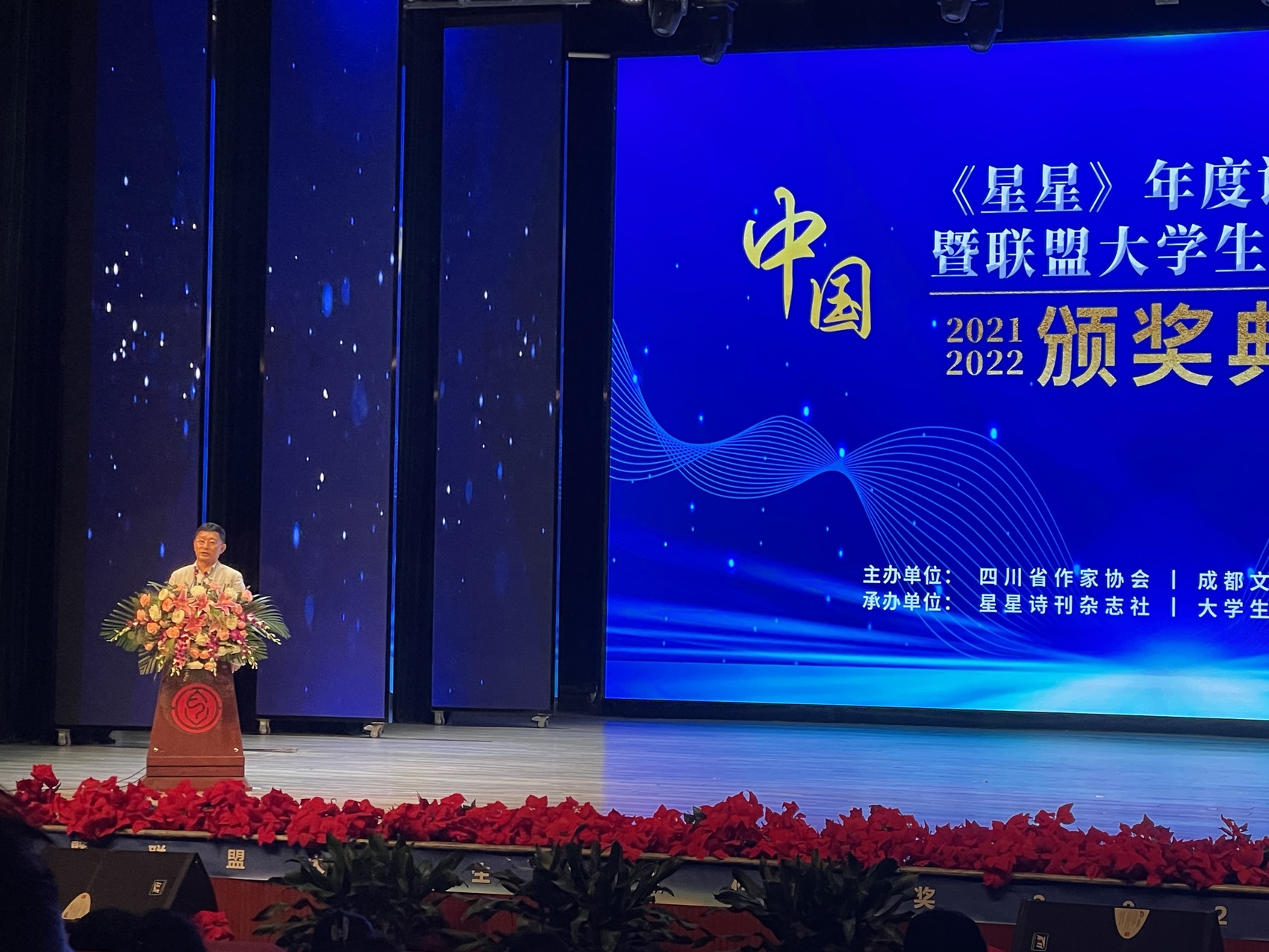 5月11日,由《星星》诗刊社、成都文理学院主办的“2021-2022年度中国·星星年度诗歌奖”颁奖典礼在成都文理学院举行。欧阳江河、王学芯、蒋登科、刘波、张雪萌、师飞等6位诗人、评论家分别获奖。