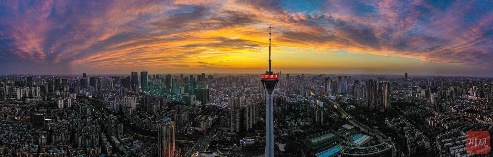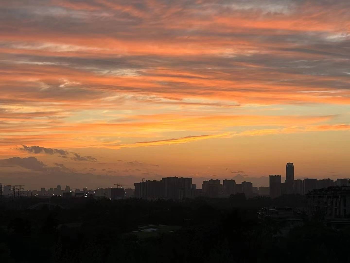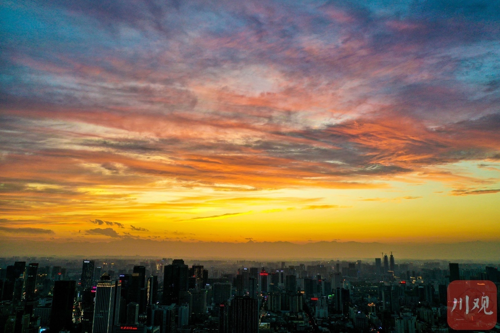 继清晨迎来雪山上线,今天傍晚,成都天空出现晚霞,美得如油画一般。