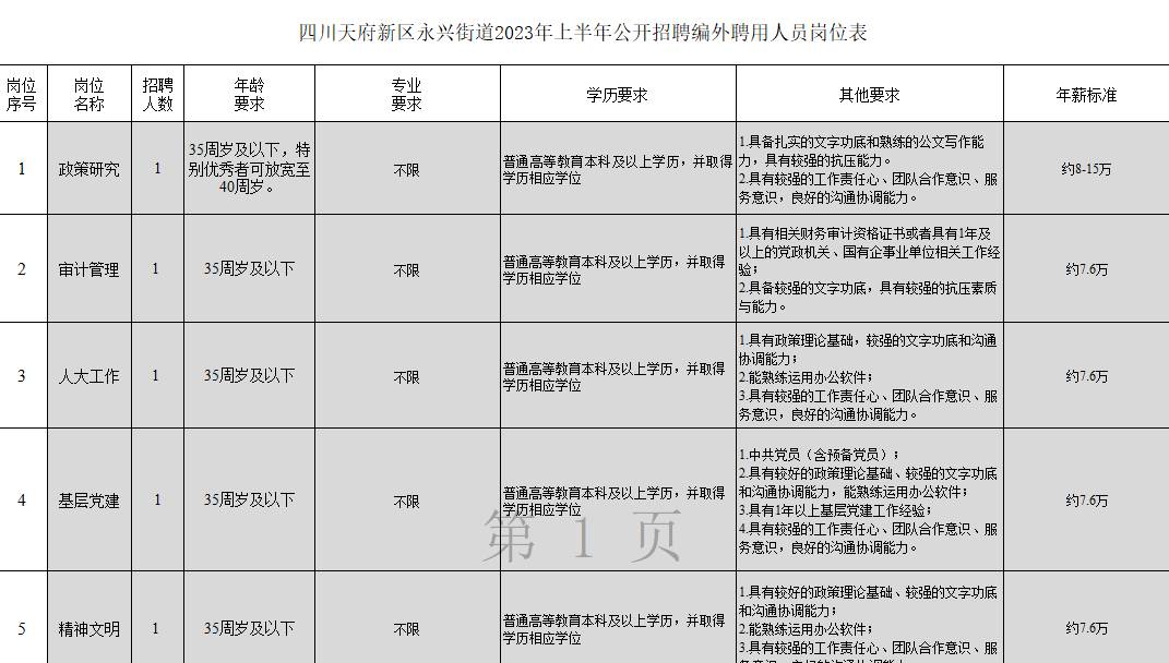 详见附件:四川天府新区万安街道2023年上半年公开招聘编外聘用人员岗位表