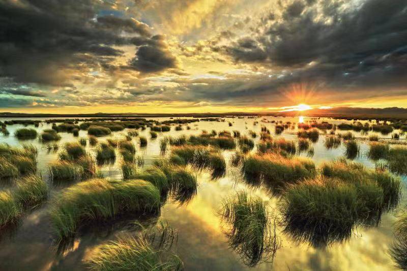 夕阳下的若尔盖花湖湿地。 阿坝州林草局供图