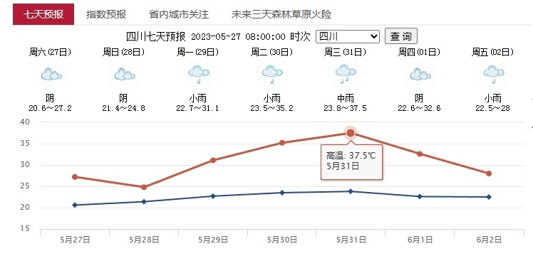 四川下周最高气温37.5℃