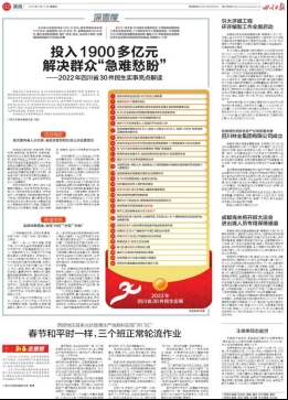 (2022年5月27日,《四川日报》隆重推出148个版珍藏特刊“兴川答卷”,多维度全面呈现四川过去五年发展成就。上图为T01/T04版)