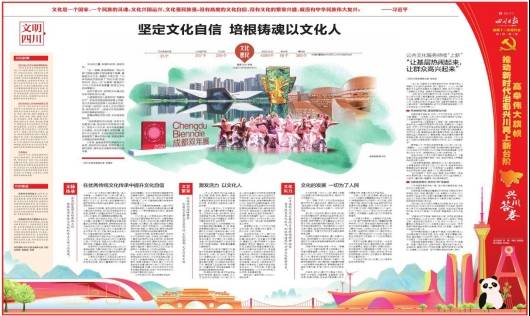推出“文明四川”特刊,围绕长征国家文化公园(四川段)建设、四川新时代文明实践中心(所、站)县乡村三级全覆盖、文明城市创建等话题推出深度报道。“七一”建党节,推出4个整版红色主题特别报道,致敬伟大建党精神,庆祝党的生日。举办“四川省第一届红色宣讲员大赛 网络推荐活动”,讲好红色故事,传承红色基因。连续三年策划“追光”天府人物推介活动,讲述各条战线先进人物的正能量故事。开设“奋斗者 正青春”新闻专题,推出“青春心向党 百年再启航”“青春闪耀时”等系列人物报道。