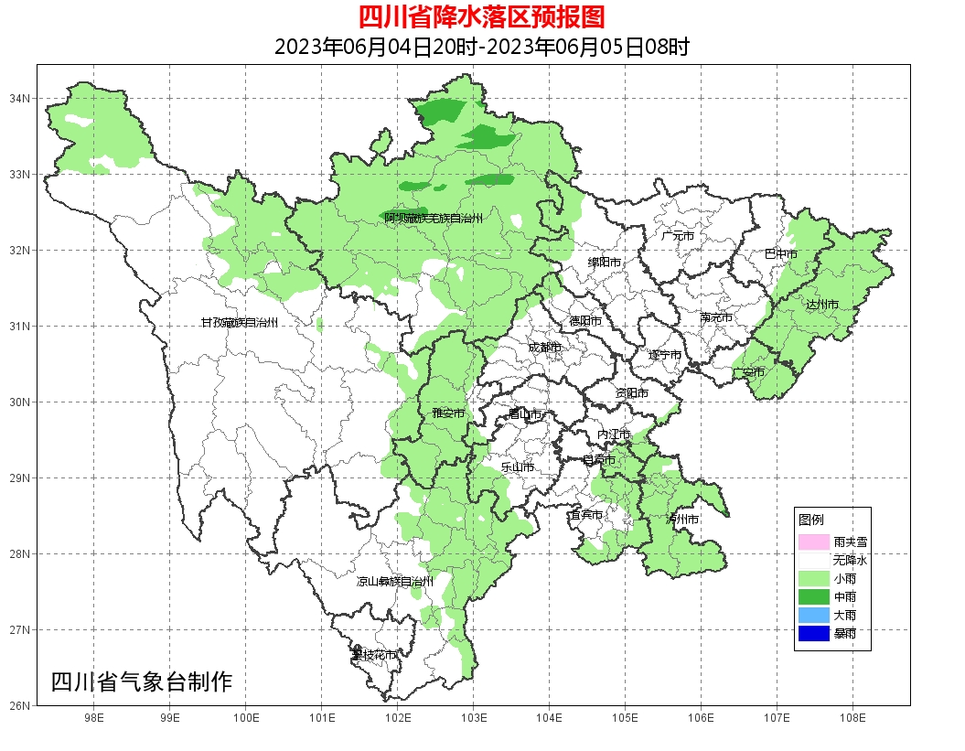 今天晚上:盆地大部阴天,其中西部沿山和达州、广安、宜宾、泸州4市有分散阵雨;阿坝州、凉山州东北部阴天间多云有阵雨或雷雨,甘孜州大部和攀西地区其余地方晴间多云。