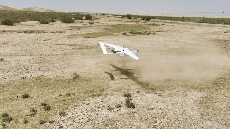 搜救现场,“四川造”垂直起降固定翼无人机傲势XC-25亮相东风着陆场上空,助力航天搜救人员圆满完成神舟十五号载人飞船返回搜救任务。