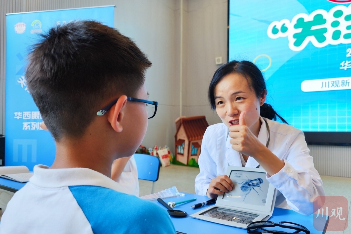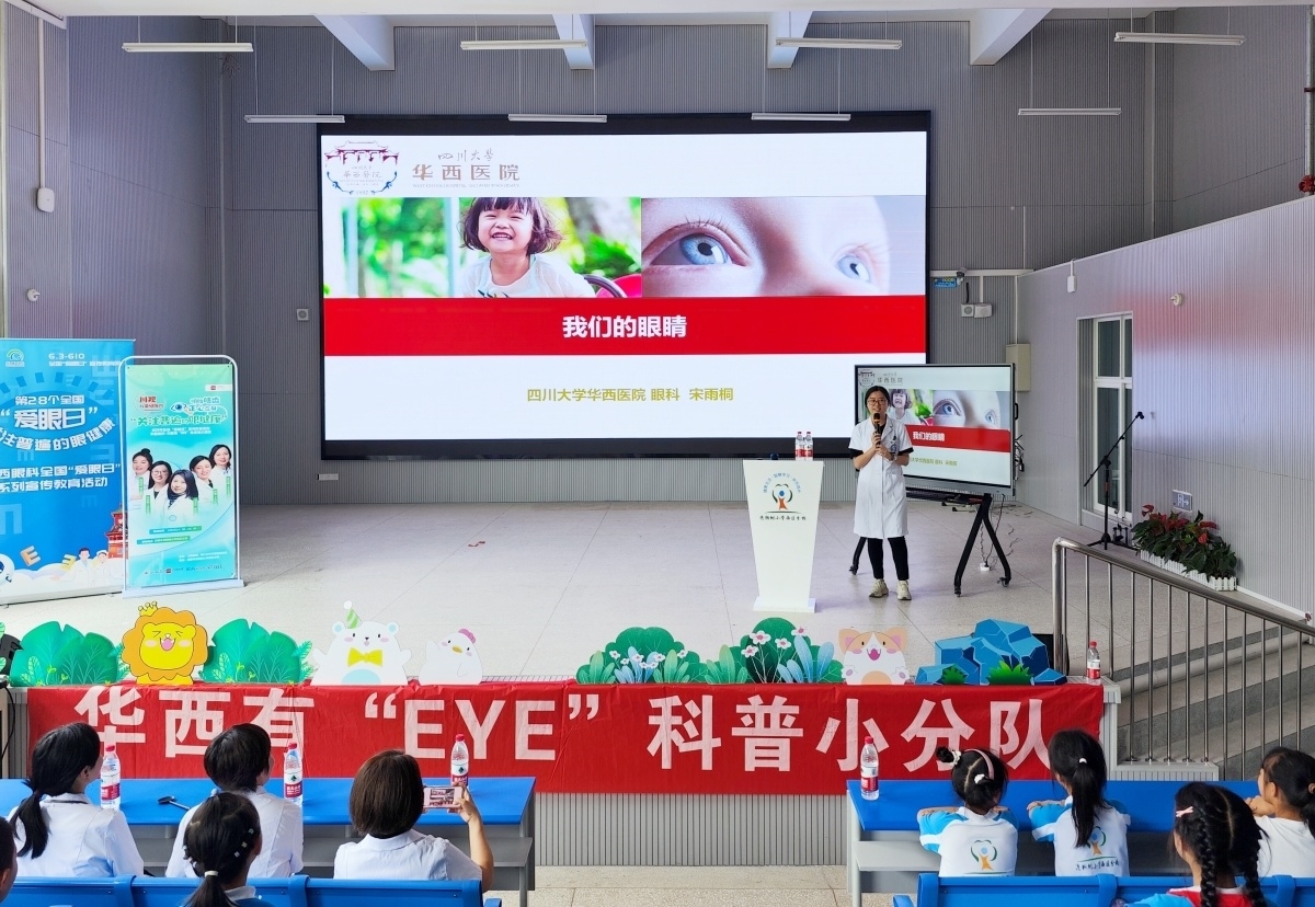 四川大学华西医院眼科刘春玲教授带领华西有“EYE”科普小分队,通过开展“爱眼、护眼”科普讲座 、儿童视功能检查、眼健康咨询等方式,告诉孩子们保护眼睛的重要性、如何正确爱眼护眼,守护孩子们的眼健康。
