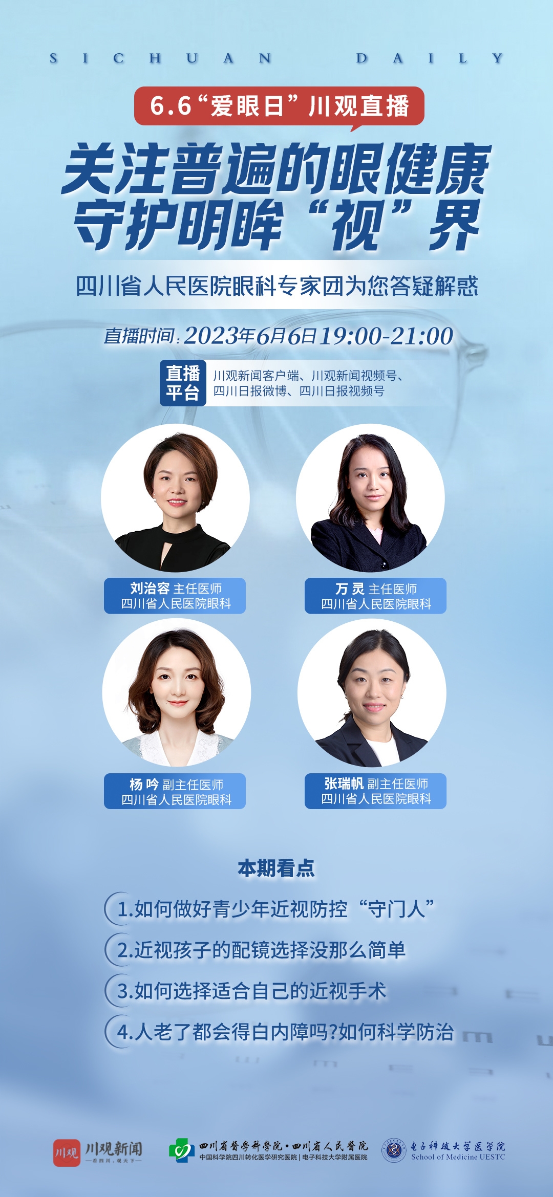 川观新闻联合四川省人民医院开展健康主题直播,邀请眼科专家团从青少年近视防控、近视孩子的配镜选择、近视手术以及白内障防治等方面,进行直播科普,为用户和网友答疑解惑。
