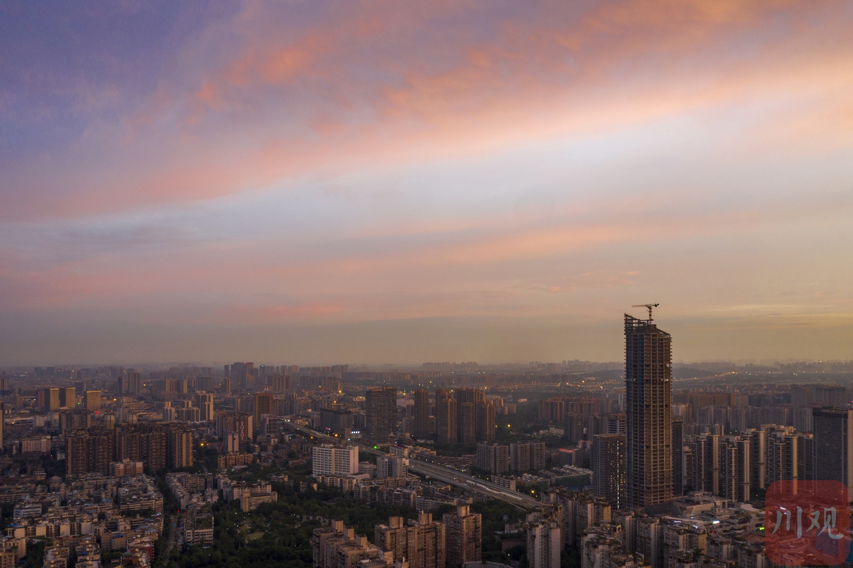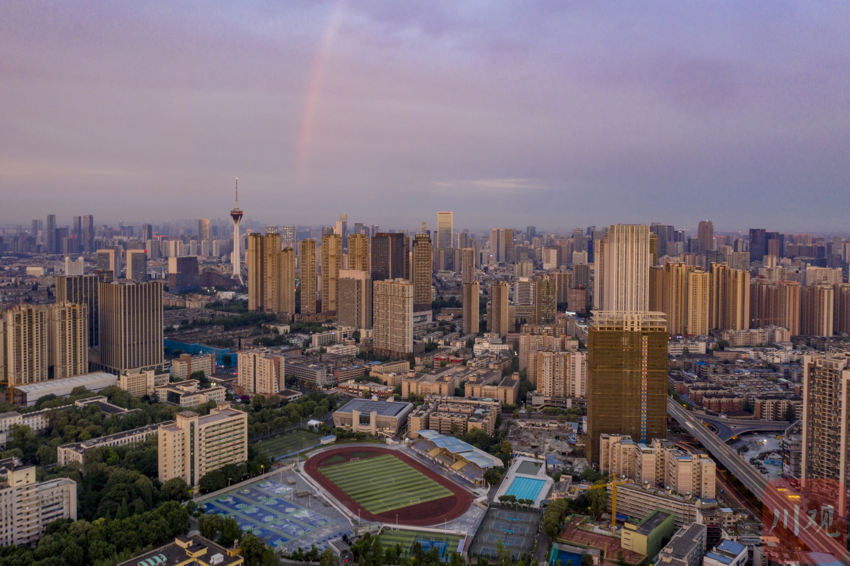 6月6日清晨,成都上空云雾缭绕,随着太阳慢慢升起,阳光划破云层撒向大地,一道彩虹隐约出现在天空中。据说,对着彩虹许愿就会有好事发生,今天早晨你许愿了吗?