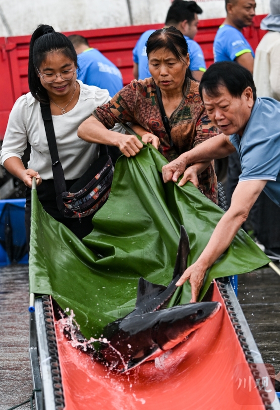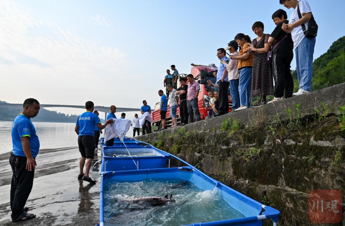 在长江边上,市民和工作人员一起放流国家一级重点保护水生野生动物、素有“水中大熊猫”之称的长江鲟5000余尾,其中包括了102尾具有繁殖能力的长江鲟亲鱼,助力长江鲟野外种群建立,修复长江流域生态和环境。